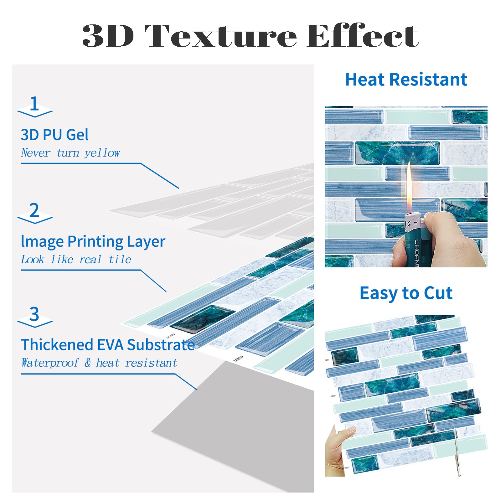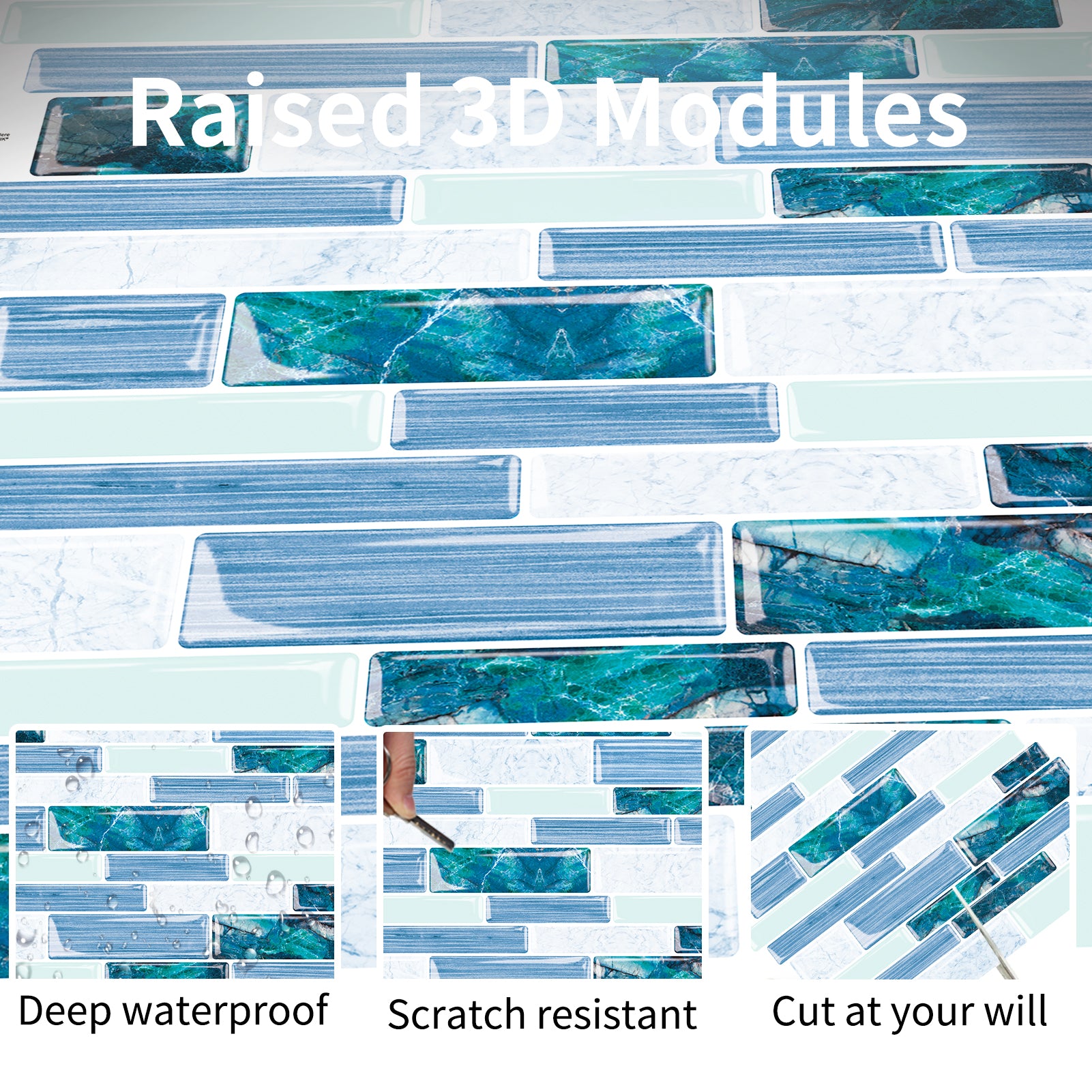 Ist Momoreo Ocean Green Peel and Stick Backsplash 3D Adhesive Wall Tile 12"x12"(30.5 x 30.5 cm)